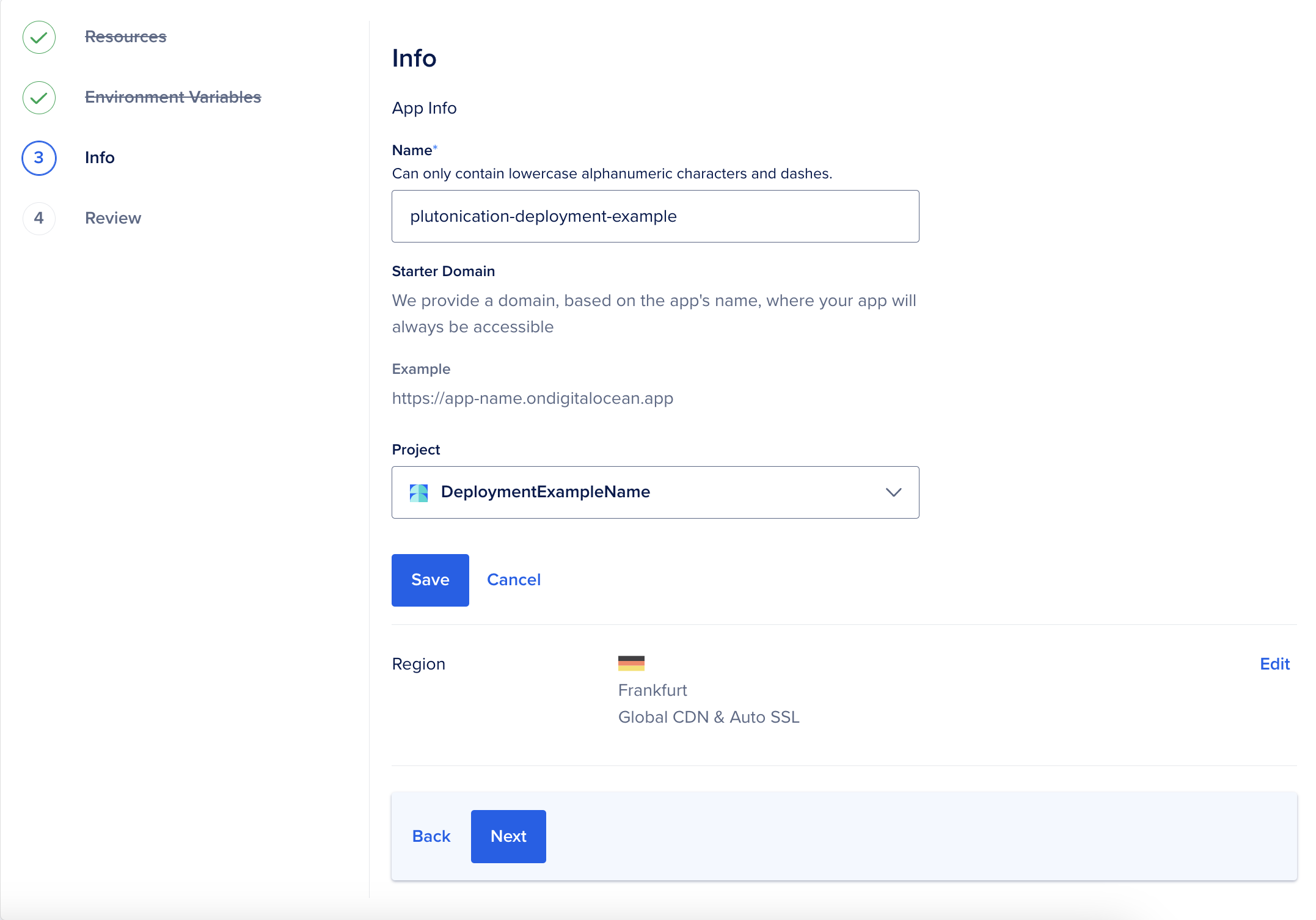 Fill in the rest of the app info. Mainly, select the location of the server.