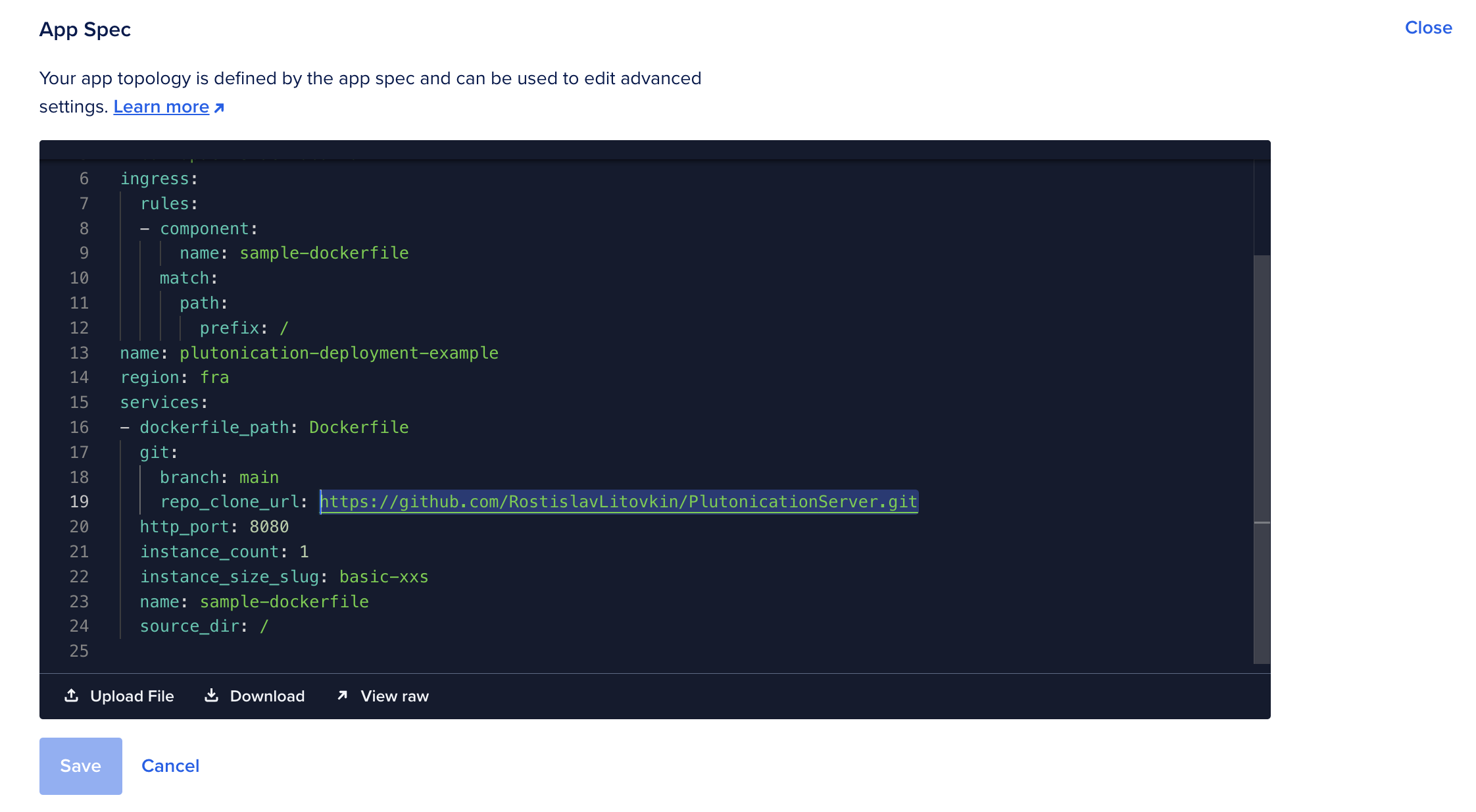 In the settings tab, edit the app spec. In the YAML file, change the line 19 to include the