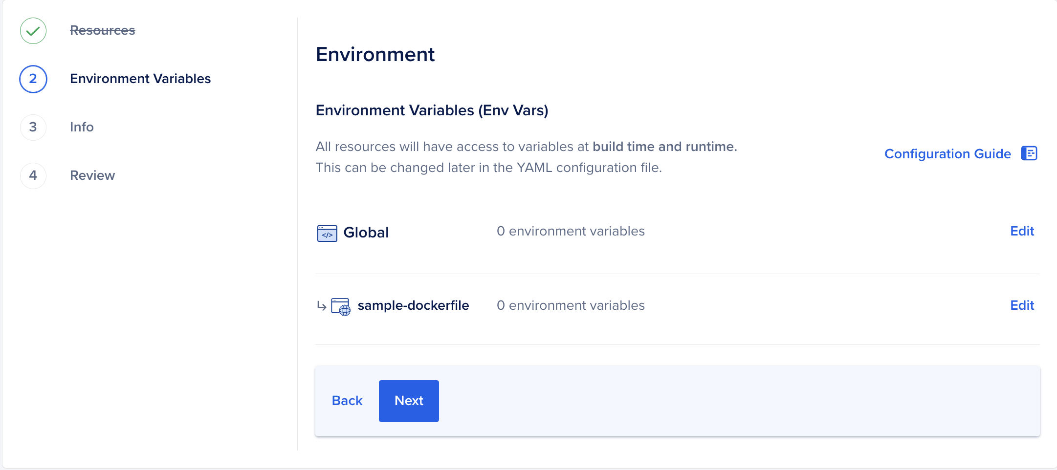 Now in the sources, select Other: Choose Sample App and in the dropdown menu, select the Dockerfile option.